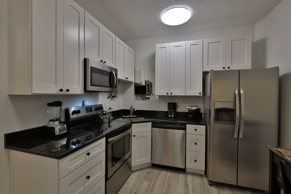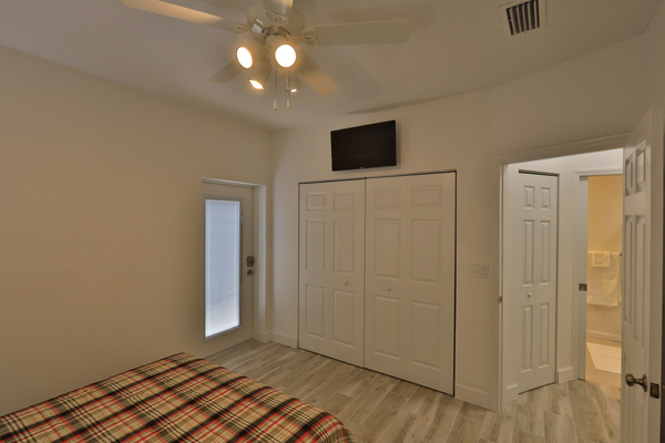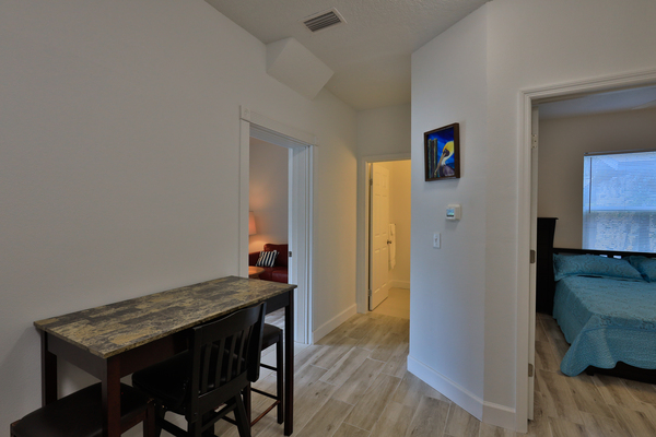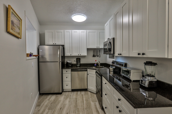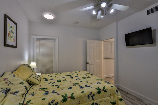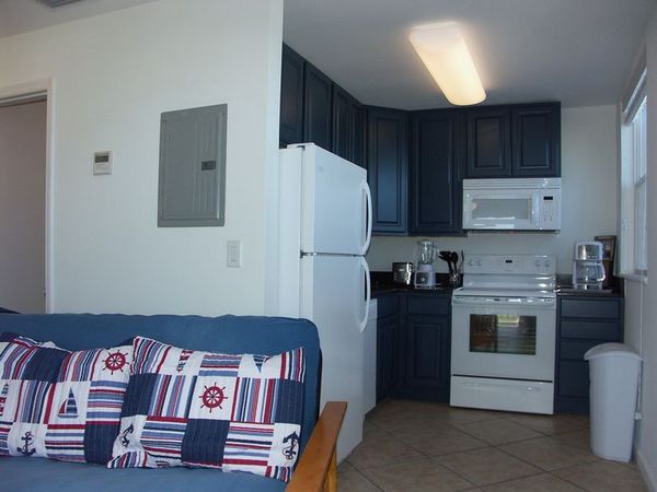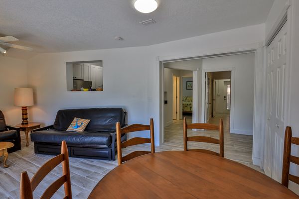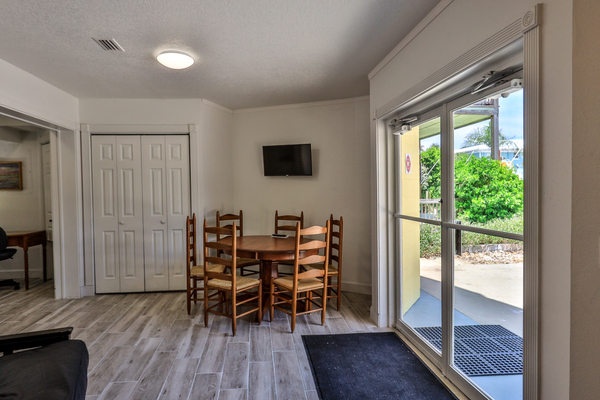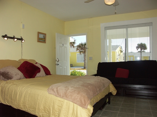 Newly renovated and attractively furnished one bedroom that sleeps four people.Each room is decorated with murals and/or art work by local Flagler Beach artists. Full sized, fully equipped kitchens for comfortable longer-term stays. Most units include stove, refrigerator, microwave and dishwasher. Every rental has one or more flat screen TV with over 100 Direct TV channels including numerous sports and movie channels.