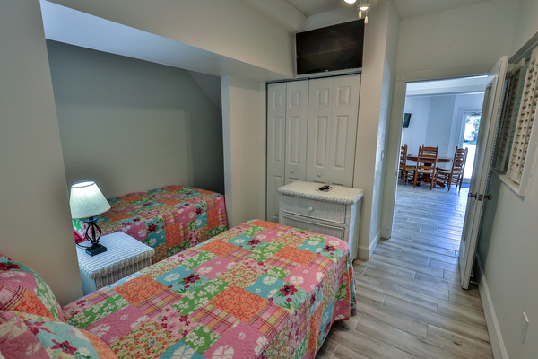 Newly renovated and attractively furnished two bedroom that sleeps six people. Each room is decorated with murals and/or art work by local Flagler Beach artists. Full sized, fully equipped kitchens for comfortable longer-term stays. Most units include stove, refrigerator, microwave and dishwasher. Every rental has one or more flat screen TV with over 100 Direct TV channels including numerous sports and movie channels.